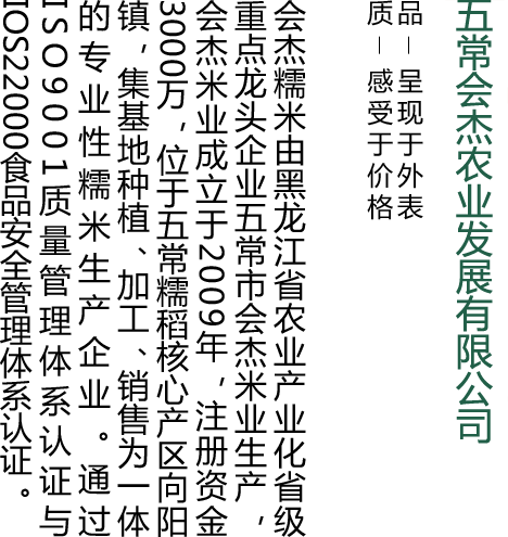 天然灌溉五常——屬于中溫帶大陸氣候,全年無(wú)霜期140天,有效積溫2500℃,活動(dòng)積溫比 其他地方高2℃-3℃,有利于支鏈淀粉、干物質(zhì)積累